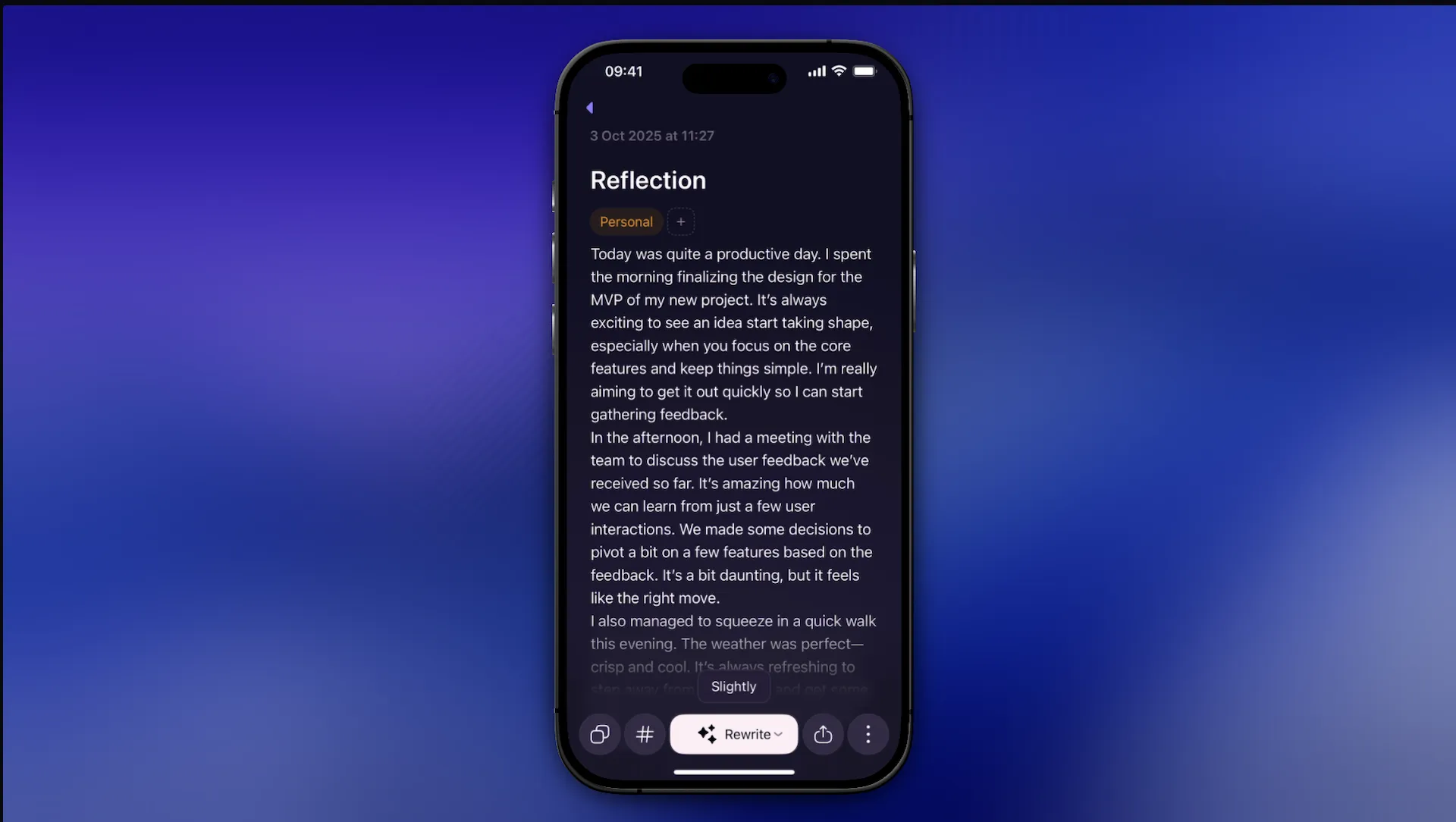 Apps like Letterly bring it to the next level with more accurate transcription, AI-powered summaries, and even ready-made prompts to spark reflection. That way, your ideas don’t just get recorded – they become organized, meaningful entries you can actually use and analyze afterwards.