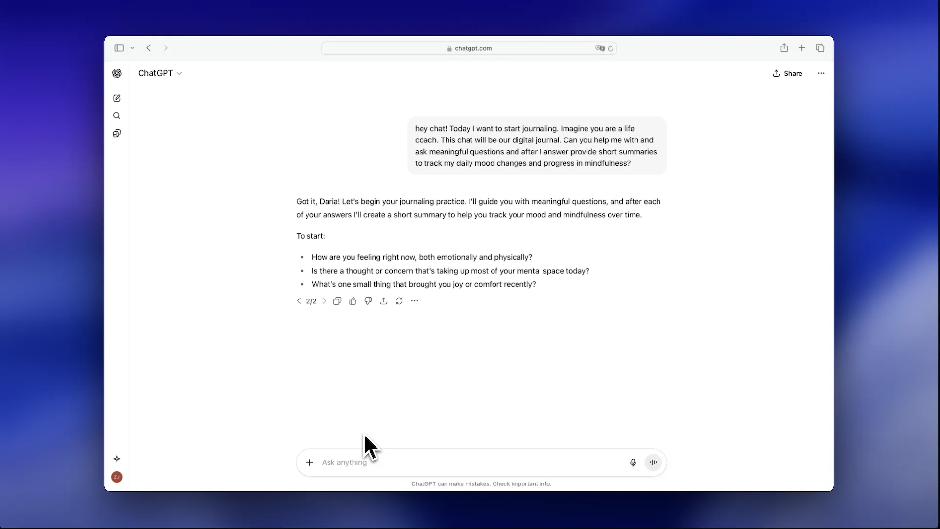 ChatGPT – is not just for asking random questions like how to fix a leaky pipe, create an Excel sheet, or rewrite your term paper the night before it’s due. You can also use ChatGPT to generate prompts for your journaling and ask you mindful questions.