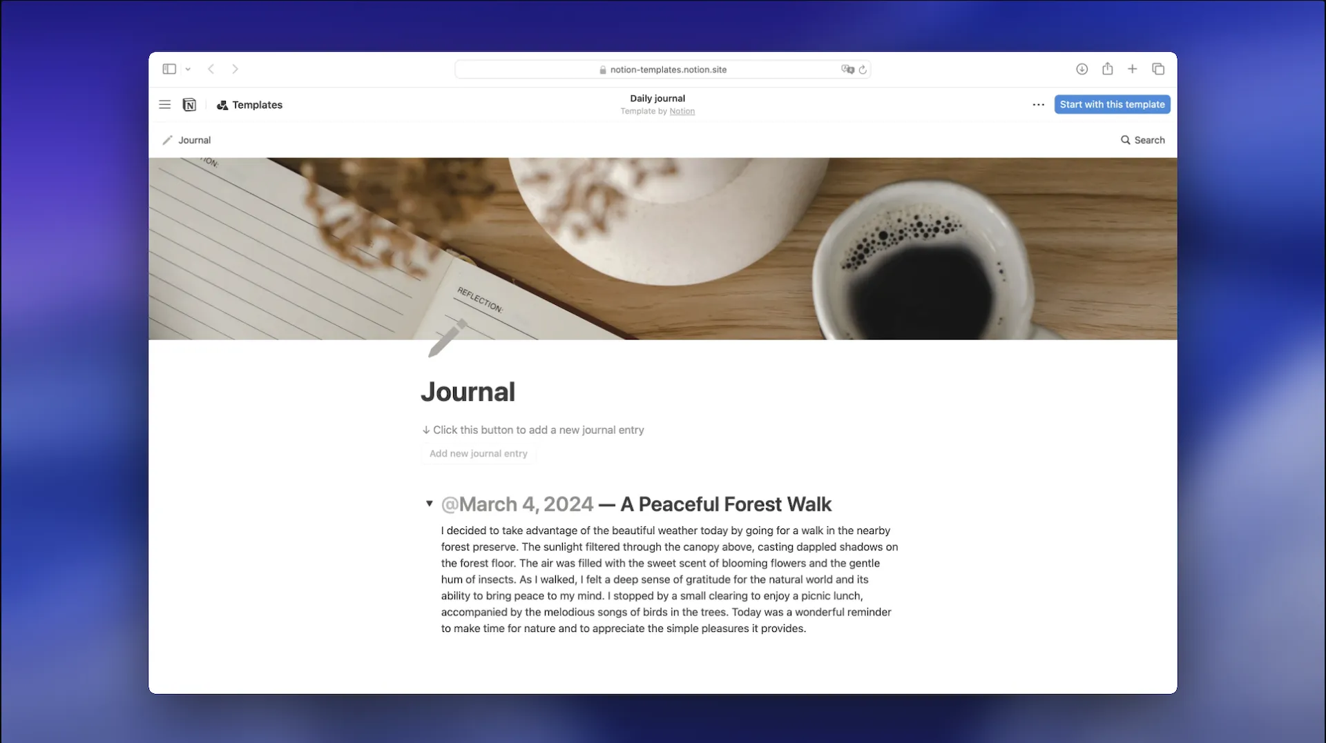 Notion – known for productivity, Notion allows you to use pre-made templates or create your own AI-enhanced journaling system tailored to your needs.